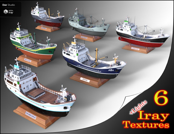 This little boat has so many nice details that I decide to create some more for it. A lot of new details are put in this little item using the texture process. Now,it comes with 6 new Iray textures and a light control (as usual). Just check the story of it.